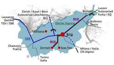Journey's Information การเดินทางไป Brig A. ทางรถไฟ www.sbb.ch การเดินทางไป Brig โดยใช้การบริการทางรถไฟจัดว่าสะดวกและปลอดภัยที่สุด มีรถไฟของ SBBบริการตลอดเวลา นอกจากนี้ยังมีรถไฟ TGV แล่นผ่านด้วย