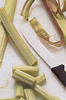 เลาะเอาเปลือกนอกออกล้างทำความสะอาดและหั่นเป็นแท่งยาวขนาด