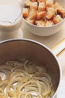 นำลงใส่ผัดในกระทะที่ใส่เนยไว้อย่าผัดให้เหลืองผัดแค่ออกสีตามรูปที่เห็น