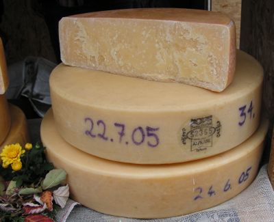 เนยทางซ้ายมือเป็นเนยที่ทำมาจากนมแกะที่เราเรียกว่าSchafkaese
