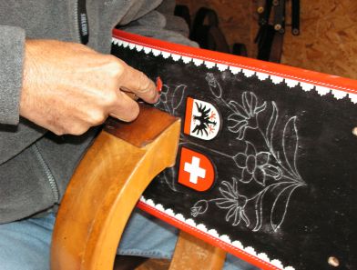 หนังที่ใช้คาดคอวัวผูกระฆัง มีความหนาพอสมควรและบนหนังจะวาดลวดลาย