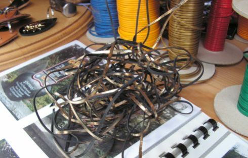 ที่เห็นกองอยู่คือเชือกหนังที่ทำมาจากหนังจิงโจ้ ราคาของหเชือกหนังจิงโจ้จะมีราคาสูง