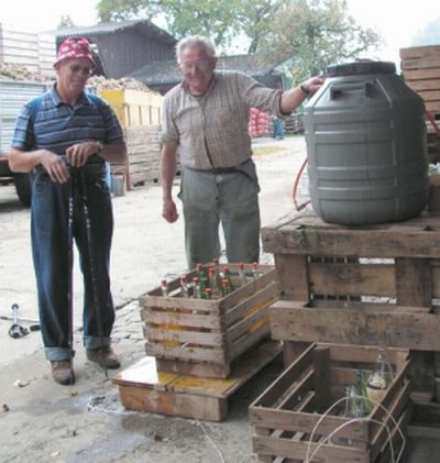 และกรอกน้ำแอปเปิลที่คั้นสดๆเสร็จแล้วใส่ขวด