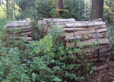 ขณะที่เราเดินผ่านจะเห็นกองไม้ที่ตัดและมัดไว้เรียบร้อย