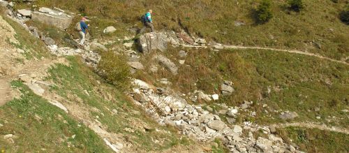 ทางชันมากและต้องปีนป่ายก้อนหินใหญ่