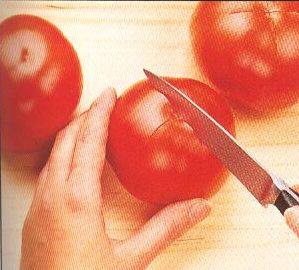 1. นำมะเขือเทศ 500 กรัมที่สุกมากๆมากรีดแบบในรูป