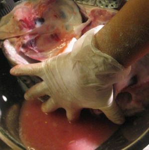 ที่ติดอยู่ที่หัวปลาให้ออกมา ถ้าไม่ผ่านขั้นตอนการล้างปลา