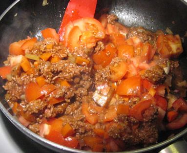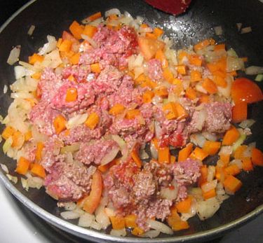พอเข้ากันได้ดี แล้วก็ค่อยใส่เนื้อบดลงไปผัดผสม