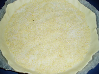 พอเสร็จแล้วก็เอาเม็ดอัลมอนด์บดโรยให้ทั่วถาด เลยนะค่ะ ตามด้วยน้ำตาลโรยให้ทั่วถาดเหมือนกันแบบนี้ค่ะ