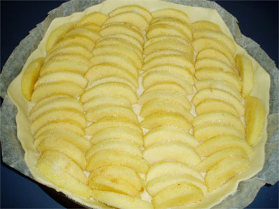 พอเรียงเต็มถาดแบบรูปบนแล้วก็เอาน้ำตาลโรยให้ทั่วแอ๊บเปิ้ลอีกทีค่ะตามรูปเลยนะค่ะ