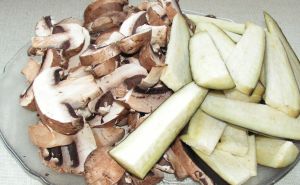 และมะเขือก็หั่นตามใจชอบจะยาวหรือสั้นตามใจหั่นเป็นชิ้น