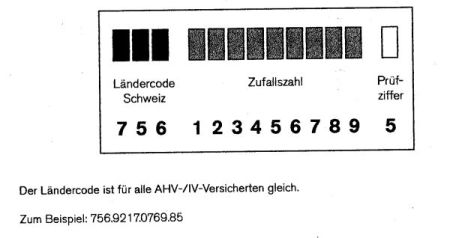 หมายเลขประจำตัว AVS/AHV จำนวน 11 ตัวเลขเราใช้กันอยู่ในปัจจุบันนี้จะเริ่มเปลี่ยนไปเป็นจำนวน 13 ตัวเลขจากต้นปี 2008 เนื่องจากเหตุผล 2 ประการ คือ ระบบตัวเลข 11 ตัวนี้เก่าทำให้มีความจำกัดและเพื่อเพิ่มการป้องกันความปลอดภัยในการใช้