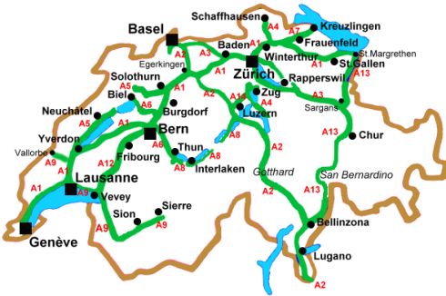 จะเห็นได้ว่าประเทศสวิตฯมีถนนที่ใช้บริการสำหรับคนขับรถ