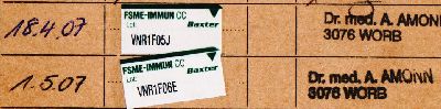 หลังการฉีดแต่ละครั้งจะติดสะติกเกอร์เครื่องหมาย FSME