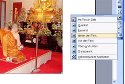 คลิกขวาที่ภาพ เลือก Format Picture --> lay out --> behind text