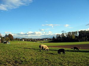 เขาเลี้ยงเป็ดไว้ฝูงหนึ่ง  แบบเลี้ยงไว้กินเนื้อ  คนสวิสก็ชอบกินเนื้อเป็ดนะ  เป็ดมันออกไข่เขาเอาเก็บใส่ตระกร้า  ป้าไปเห็นมาเลย