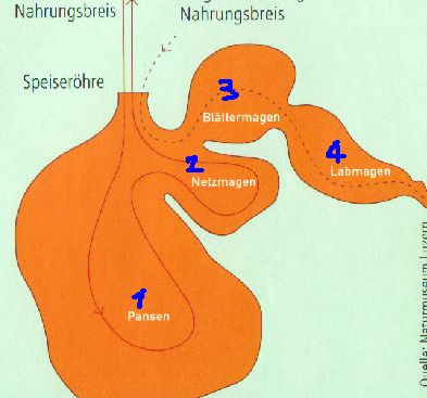 หลังจากที่วัวกลืนหญ้าที่ถอนลงในกระเพาะPansenโดยที่หญ้าเหล่านี้ไม่ได้ถูกเคี้ยว